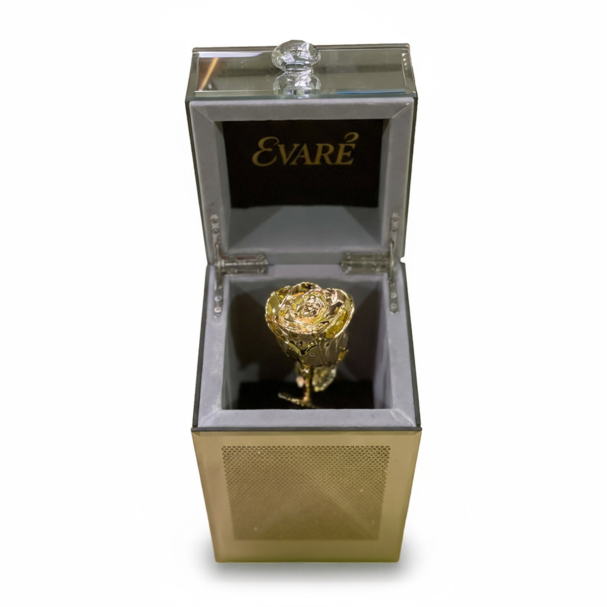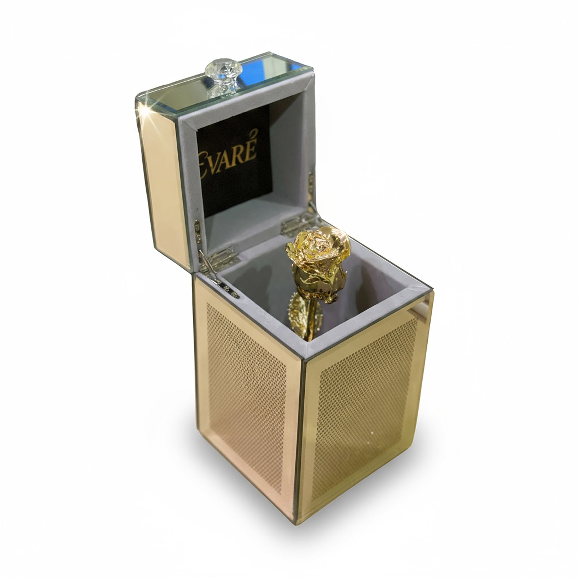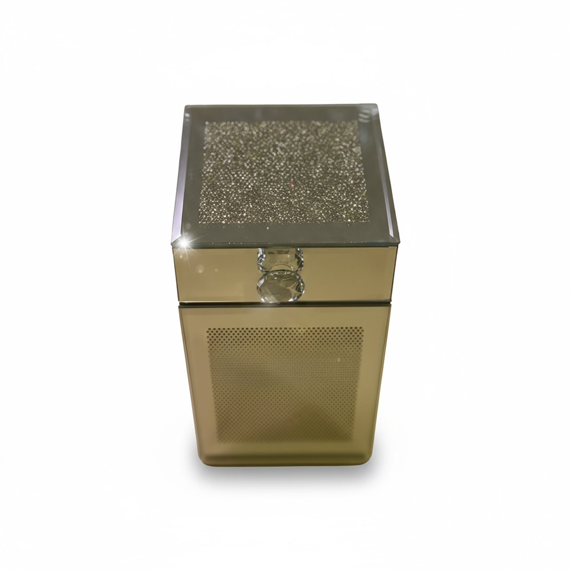 A minimalist glass box crafted for the modern collector. Reflective surfaces and delicate crystal accents make this piece a symbol of elegance — compact, radiant, and undeniably luxurious.